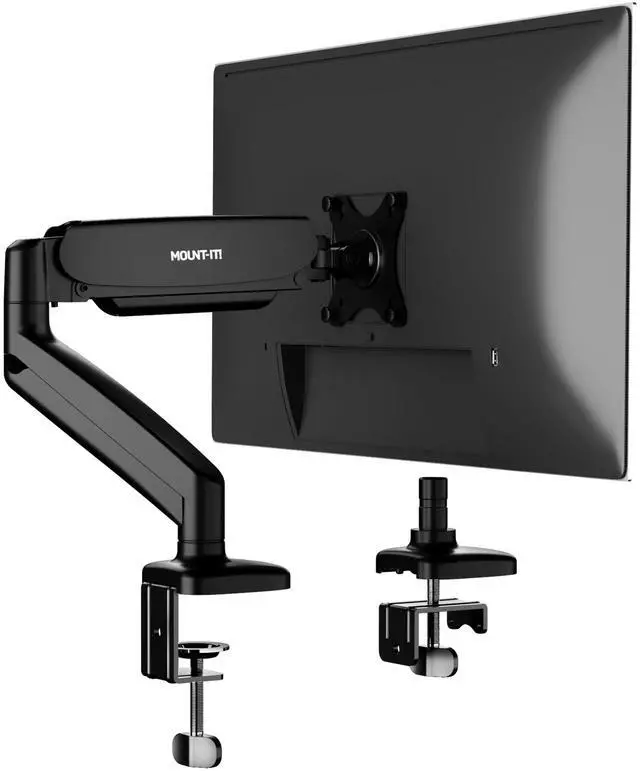 Monitor Arm Single Monitor Desk Mount, Articulating Gas Spring Arm, Fully Adjustable 13"-32" Screens, VESA 75x75 100x100, Clamp & Grommet Base, Holds 17.6 lbs