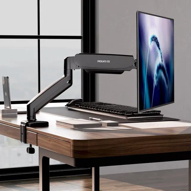 Ergonomic & Fully Adjustable Monitor Arm Improve posture and reduce neck and back strain with full motion articulating arm, allowing tilt (+90°/-45°), swivel (+/-90°), and 180° rotation. Easily switch between landscape and portrait mode for the perfect viewing angle, enhancing productivity and comfort. Adjustment tension can be fine-tuned to accommodate different monitor weights, ensuring effortless movement.
