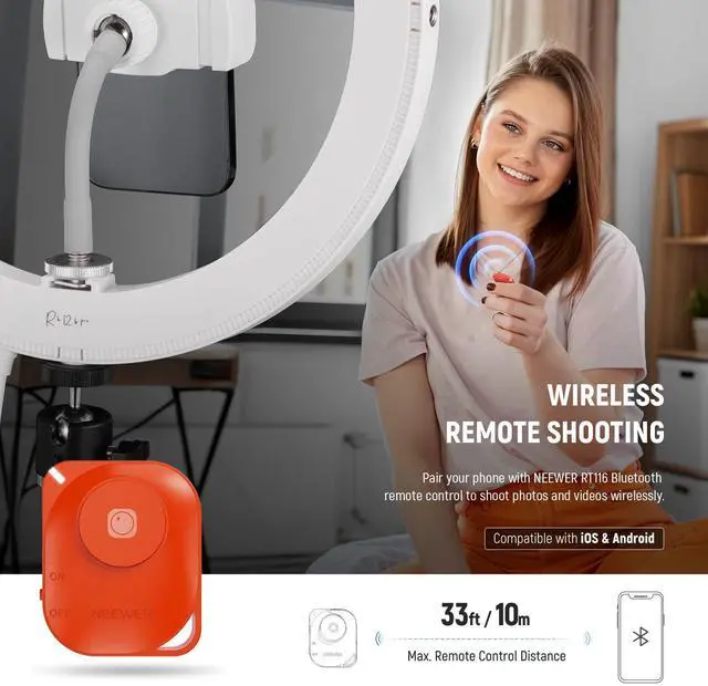 Pair NEEWER RT116 Bluetooth shutter release with your phone for wireless photo & video taking.