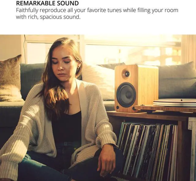 Undeniably loud. Satisfy your craving for powerful, full-impact sound with YU6. Armed with a formidable Class D amplifier pumping out 200W peak power, YU6 will have you questioning what it really means to be loud. Its 5.25 Kevlar drivers and 1 silk dome tweeters inject detailed sound into every square inch of living space, evoking emotions that can only be expressed with an ear-to-ear grin. A built-in phono preamp makes it easy to spin your favorite tunes, while Bluetooth connectivity lets you keep the party going from the palm of your hand.