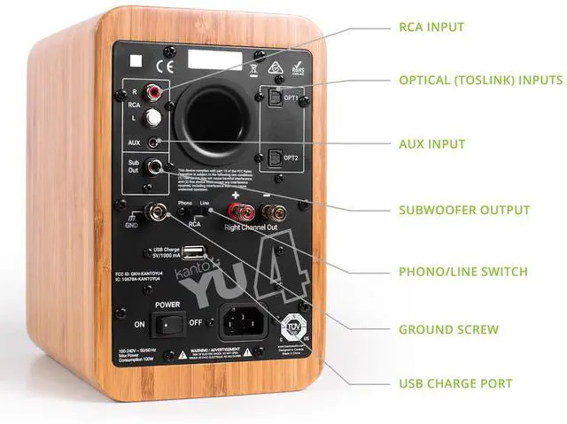 Music is made to be shared. Whether youre hanging out with friends or kicking it solo, YU4 ensures youre always in good company. Producing 140W peak power, its Class D amplifier effortlessly fills your room with rich, spacious sound. Carefully designed 4 Kevlar drivers and 1 silk dome tweeters faithfully reproduce your favorite tunes, letting you enjoy them to their fullest. Packed with connectivity, YU4 makes it easy to throw on your latest vinyl with a built-in phono preamp, or sit back and stream your carefully curated playlist via Bluetooth. Crystal-clear, detailed sound for all to enjoy.
