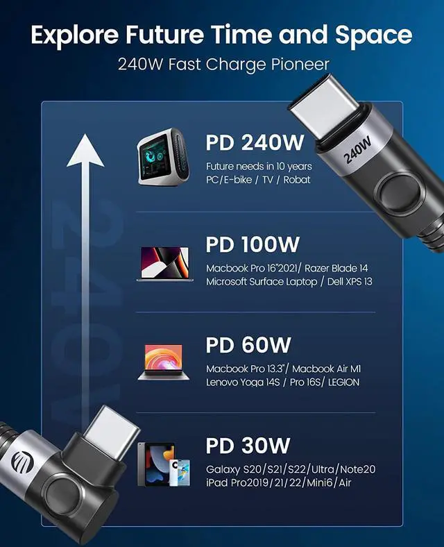 The 240W USB C to USB C cable is ORICO's newest charging technology and is currently the fastest Type C cable. Only a 240W USB C charging cable can meet the needs of fast charging. It is compatible with power below 240W, such as 180W/140W/100W/60W etc.