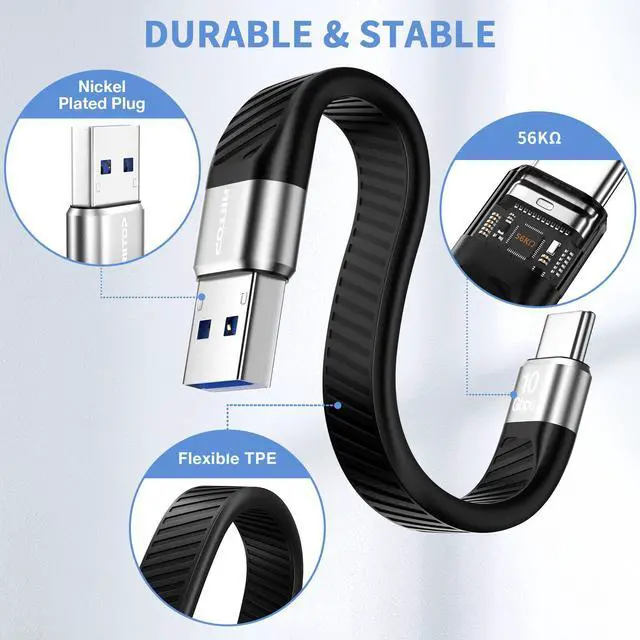 [Short but Full-feature] This Short USB C Cable is real USB 3.2 Gen 2 Cable, especially suitable for travel carrying. It can support 10Gbps Data Transfer, QC3.0 fast Charging, 4K@30Hz Video Display, and adopts FPC (Flexible Printed Circuit) inside which makes the cable more Reliable and flexible.