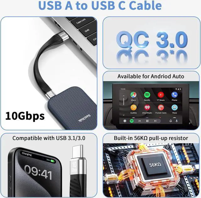[QC 3.0 15W Fast Charging]: USB3.1 A to USB C cable is Compatible with Qualcomm Quick Charge 3.0, support output power up to 3 Amp, And built-in with 56k resistance to ensure safe charging, protect your devices from damage.
