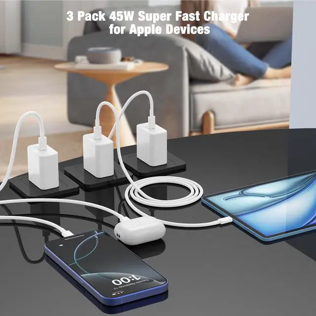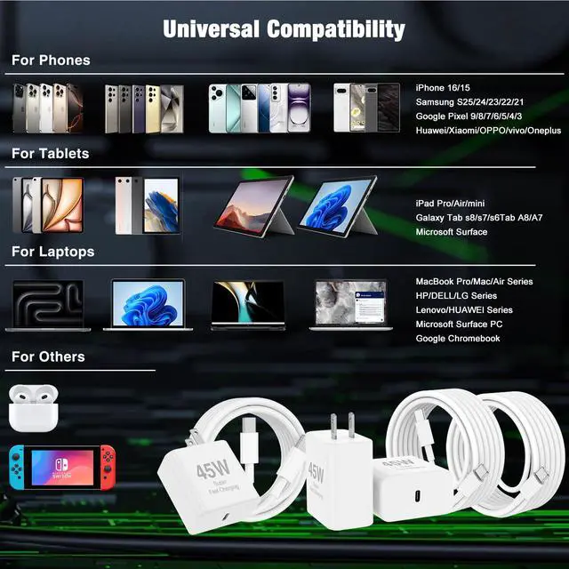 45W Super Fast Charger for iPhone 17 Pro Max/16 Pro Max/15 Pro Max/iPad 10/11th/Samsung S25/Airpods 4