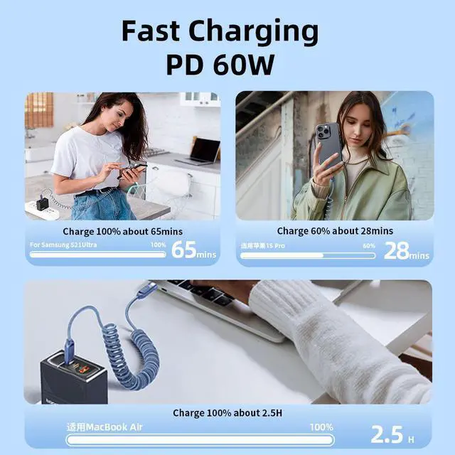 Cable Freely StretchPlug and PlayThe length can be extended to 1.8 meters, removing thelimitation of distance for charging.