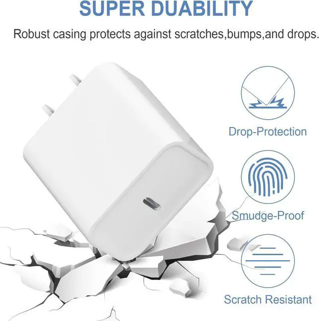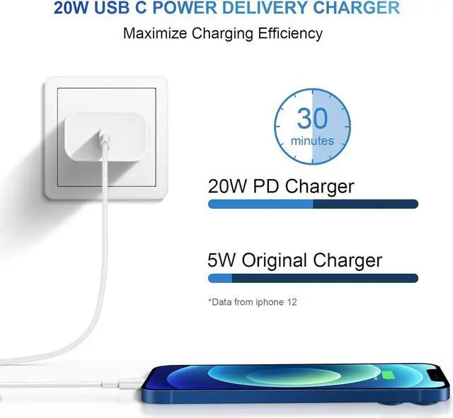 Fast Charger iPhone iPhone Fast Charger equipped with 20W PD 3.0 USB Type C power delivery wall plug Firewire Cables PD 3.0 Quick-Charge USB C port provides Max 20W output power charge your device up to 3x faster than original 5W charger charging your i Phone 12 up to 50% in just 30 minutes saving over 1.5 hrs for you. iPhone Charger Cord With the MFi Chip the USB-C to fast cord Firewire Cables equips automatic chip recognition function. The MFi Certification ensures 100% flawless compatibility with devices. No more trigger warning messages. iPad Charger Use the official i Phone fast cable Firewire Cables with Romitaz 20W USB C wall charger to access fast-charging for i Phone 14/i Phone 14 Max/i Phone 14 Pro/ i Phone13/ 13 Pro/ 13 Pro Max/ 13 mini i Phone 12/ 12 Mini/ 12 Pro/ 12 Pro Max/ SE 2020/ 11/ 11 Pro/ 11 Pro Max/ XS/ XS Max/ XR/ X 8/ 8 Plus i Pad i Pad Pro i Pad mini i Pad Air.
