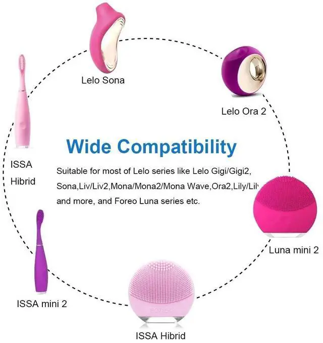 Compatible with below Devices: Compatible 1 : Compatible with Foreo LUNA series facial cleanser LUNA / LUNA 2 / LUNA mini 2 / LUNA go / LUNA LUXE, ISSA Series E-Toothbrush ISSA / ISSA Hybrid / ISSA mini / ISSA mikro / ISSA play, ESPADA Acne Treatment Device, IRIS Eye Massager. Compatible 2: Compatible for Fairywill Sonic Electric Toothbrush FWP11, FW507, FWD1, FWD3, FWD8, FW917, FW2001, FWE11, FWE11, FW917, FWT9. Compatible 3: Compatible with LELO include LELO Ida, Lyla, Lyla 2, Oden, Oden 2, Ora, Ora 2, Tara, Alia, Isla, Soraya, Inez, Yva, Mia, Mia 2, Nea, Nea 2, Lily, Lily 2, Liv, Liv 2, Gigi, Gigi 2, LELO Mona, Mona 2, Mona Wave, Ina, Ina 2, Ina Wave, Siri, Siri 2, Iris, Elise, Elise 2, Billy, Tor, Tor 2, Bo, Hugo, Bruno, Hula Beads, Loki, Loki Wave. Compatible 4: Compatible with Table lamp/Sound/Small fan/USB HUB Etc,Please confirm your device interface size before place the order.