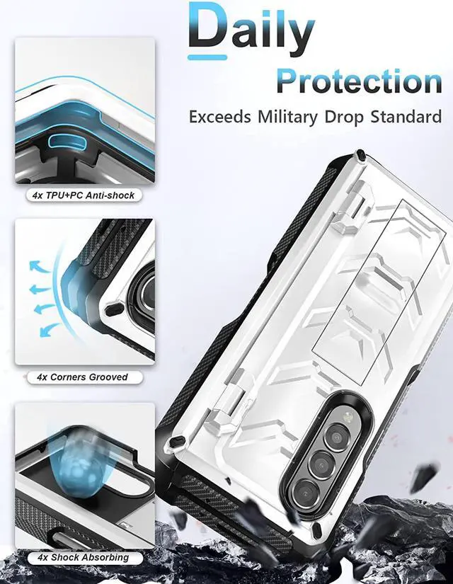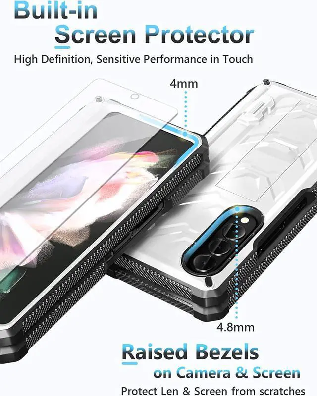 360° Full-body Protection: Besides full coverage of a soft sensitive front screen protector and hard back case with shock absorbing sponges, the anti-shock grooved bumper, the reinforced corners, and raised edges around the camera and screen will offer your Galaxy fold 3 further protection against drops, cracks, and scratches, whose effect exceeds military drop standard.