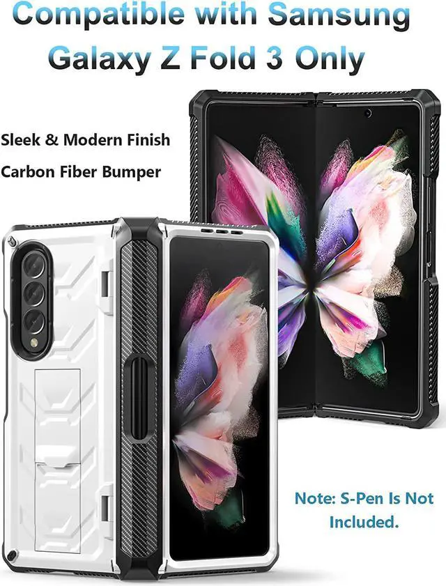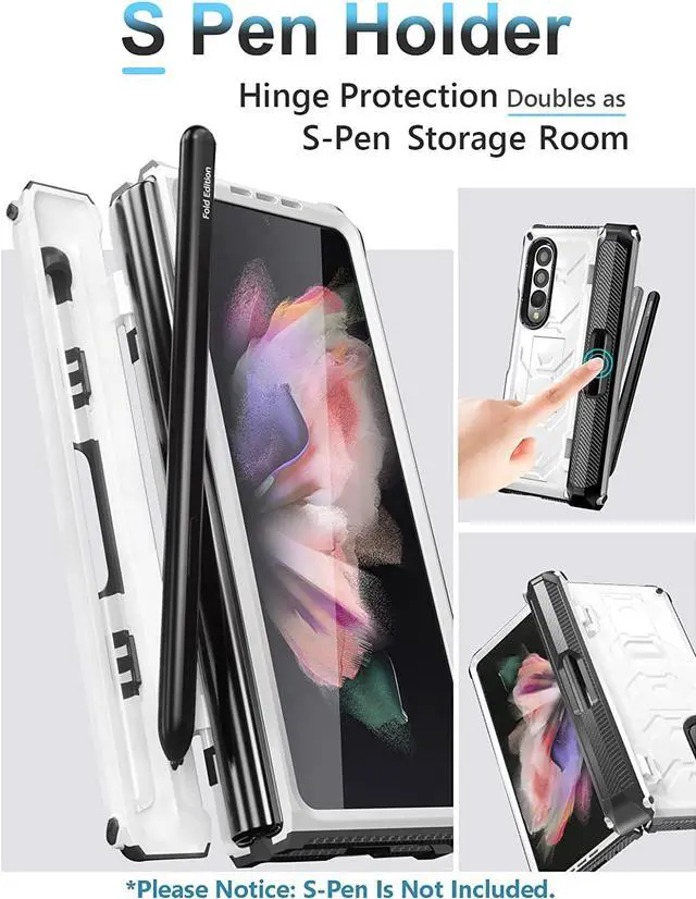 Hinge Protection Also for S Pen Store Room: Innovative 2-in-1 design for all-inclusive hinge protection seamlessly doubles as the S Pen holder, you can take your Pen anywhere anytime with our z fold 3 cases. NOTICE: S-Pen Is Not Included. And unfolding the hinge bumper, you will hear a weak “clip-crack” sound. Repeat "fold, unfold" is some kind of stress relieving.