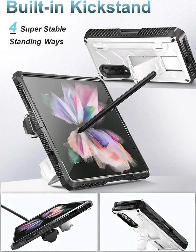 Built-in Kickstand for Hands-free Convenience: The Samsung z fold 3 case with hidden kickstand, unfold and it will bring 4 standing ways and the most comfortable viewing angles to free your hands when you are reading, watching the video, making video calls or notes, painting, etc.