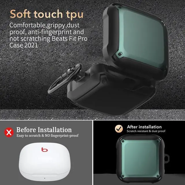 360° Full Protection - Ful-body rugged outer shell and shockproof inner corner design provides all-round protection for your new beat fit pro from drops, scratches and shocks. Anti-Lost detachable Carabiner keeps your beats fit pro from getting lost, clip to your belt loop or backpack and go. Compared with other silicone protective case, our thickened TPU Layer protective case, thicker and stronger.