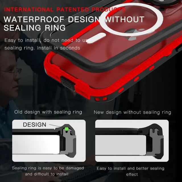 ![Alt view image 6 of 7 - for iPhone 15 Pro 6.1 inch Waterproof Case Magnetic, [Compatible with MagSafe][with Screen Protector][IP68 Underwater][15FT Military Dropproof][Dustproof] Phone Cover for iPhone 15 Pro 6.1" Red](https://c1.neweggimages.com/productimage/nb640/BF7KS2310070HY4MH2B.jpg)