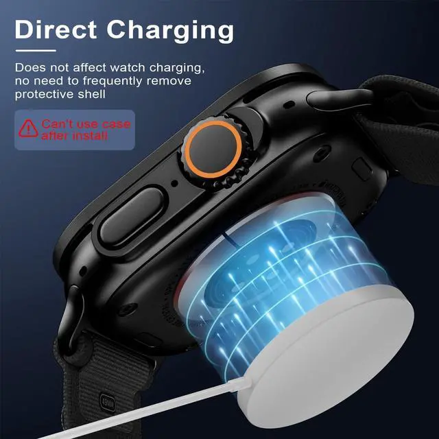 Keep Original: Made of 9H hard tempered glass + Titanium Alloy frame,keep your apple watch ultra original shape while allows you to protect the screen and the screen around the bumper from scratches in daily life.Note: Cant be wear on any other watch case after install !!!
