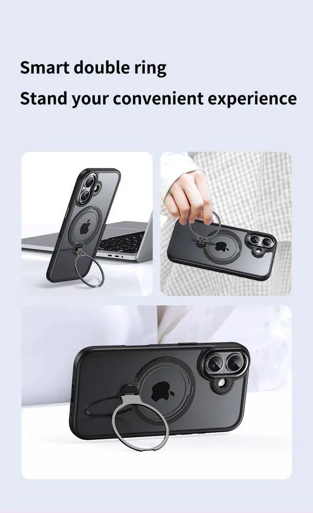 [360°Rototable Stand] One of the standout features is the dual magnets: outer rotatable 360° magnetic stand & inner magnetic ring, both of which is in fully integrated into the profile of the case. The stand allows you to rotate and get any perfect angles horizontally or vertically as your needs. Unlike other case only with one single magnet as stand which lifts the stand up when removing it from a magnetic charger. You have to use two hands or you risk ripping the stand off the case.