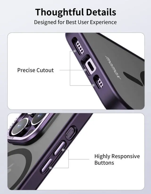 [Specially Designed for iPhone 14 Pro]: This magnetic phone case is only available for the newly released iPhone 14 Pro. Thanks to MOMAX precision craftsmanship, it fits perfectly on the iPhone body without affecting charging or audio functions. Warm Tips: Please check your iPhone model before purchase.