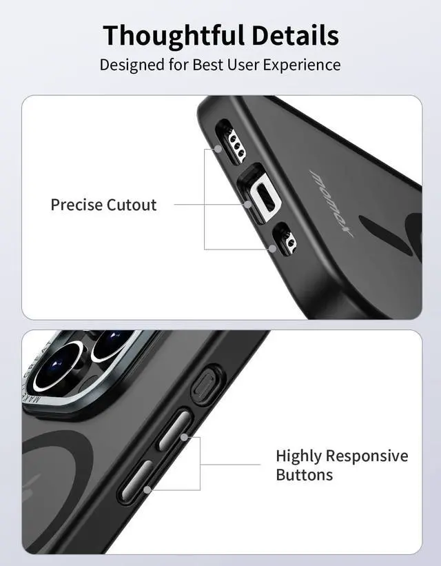 [Specially Designed for iPhone 14 Pro]: This magnetic phone case is only available for the newly released iPhone 14 Pro. Thanks to MOMAX precision craftsmanship, it fits perfectly on the iPhone body without affecting charging or audio functions. Warm Tips: Please check your iPhone model before purchase.