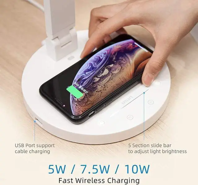 Fast Wireless & USB ChargingSmart LED desk lamp with 10W fast Qi wireless charger and a convenient USB charging port. A quick charge for two devices during reading, working, or studying.