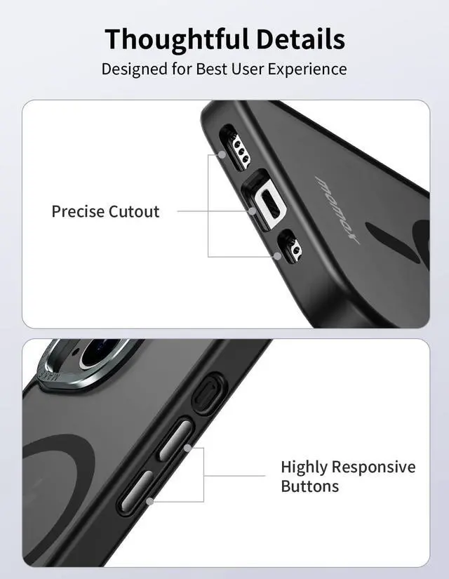 [Slim & Skin Friendly]: MOMAX magnetic phone case is only 0.04\u201d thick, yet offers max protection. The rubber touch frame and frosted textured back give you an excellent silky touch. The separate buttons also give you the same touch feedback as the original phone. This magnet phone case is made of recyclable materials and have no impact on the environment.