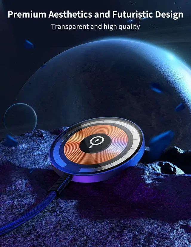 Transparent DesignThe first transparent magnetic wireless charger, slim and cyber design with glass cover & aluminum rim. A perfect accessory for Qi standard cell phones & Magsafe standard iPhone