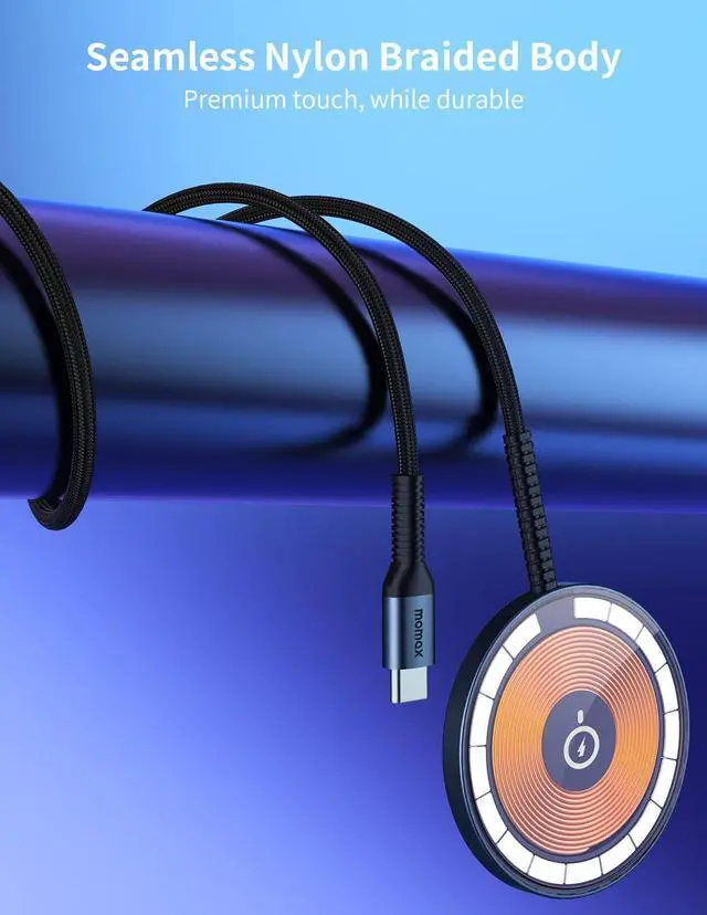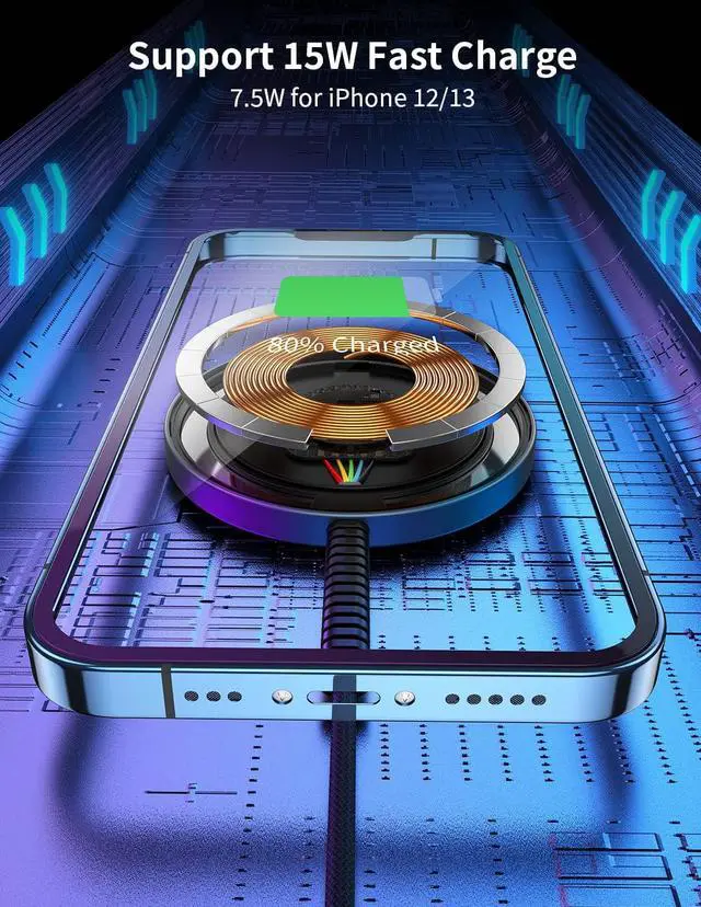 Lighweighted & 4ft LengthThe magnetic wireless charger is only 0.14lbs and 0.23 inch thin. Small and lightweight mag safe wireless charger with 4ft long braided cable, It can be easily stored in a briefcase, backpack, pocket or bag without taking up space. (No Wall Charger Included) NOTE: Please use a power adapter with at least 18W output for best results