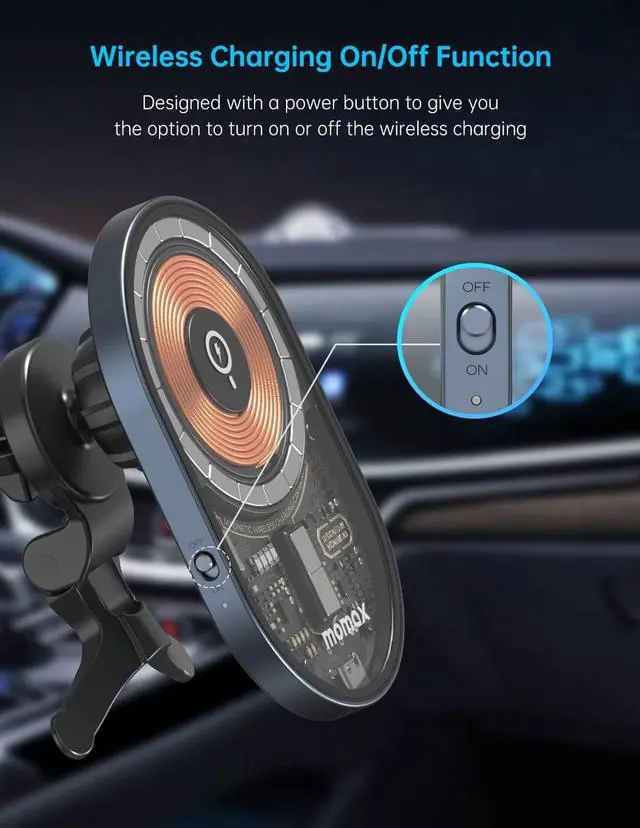 Transparent DesignThe first transparent magnetic wireless car charger, slim and cyber design with glass cover & aluminum rim. A perfect accessory for Magsafe standard iPhone