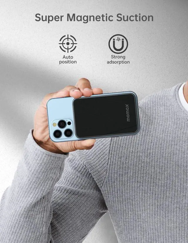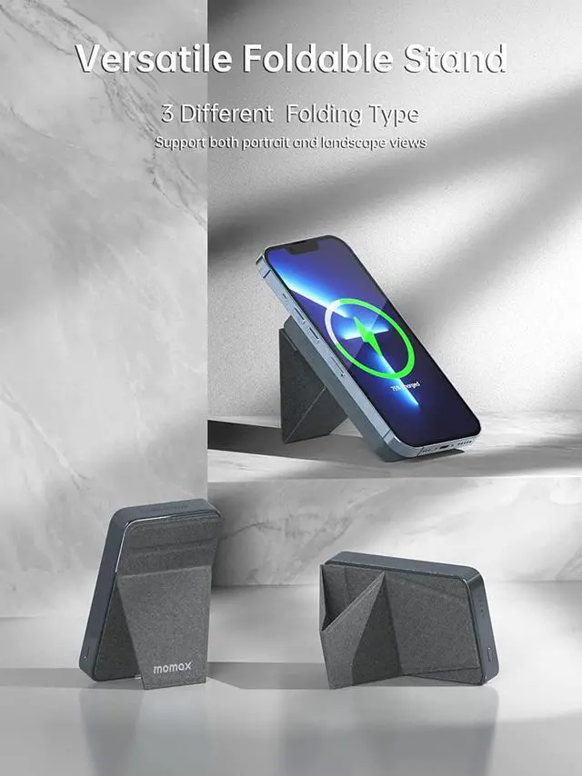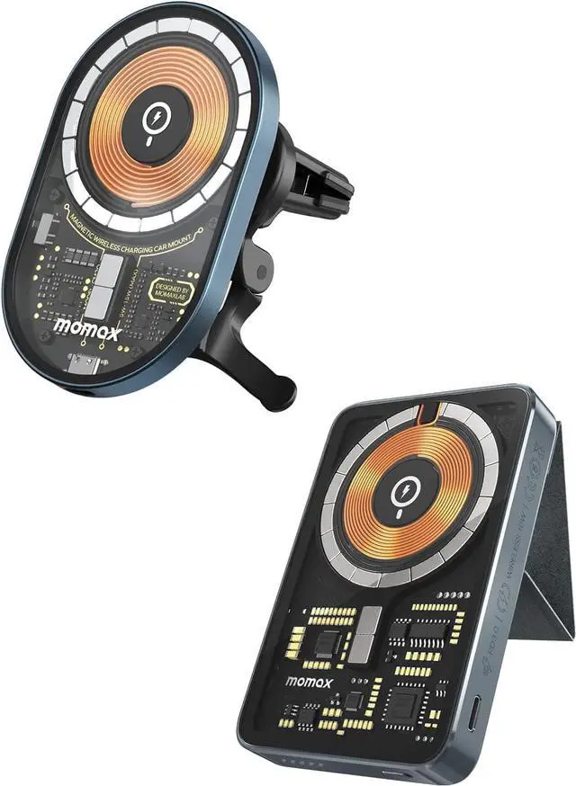 MOMAX USB-C Magnetic Portable Charger with Stand and Transparent Magnetic Wireless Charging Car Charger, Compatible with iPhone 13/13 Pro/ 13 Pro Max/ 13 Mini /12Series and Magnetic Case