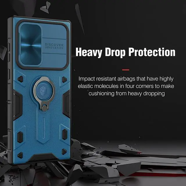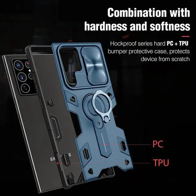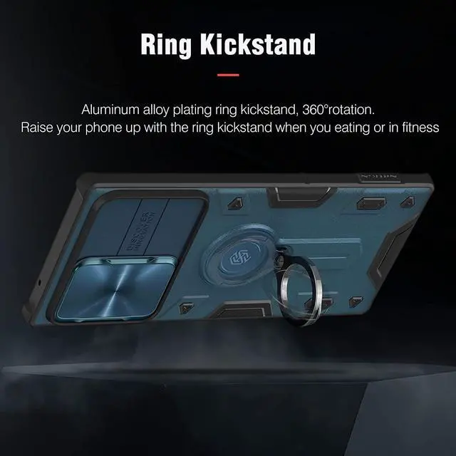 [Ring Kickstand]: Plating 360° rotating ring kickstand is hidden on the back side of the Samsung S22 Ultra protective case, sturdy enough. Ease hands when watching films, playing games or carrying anywhere.