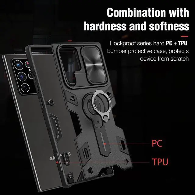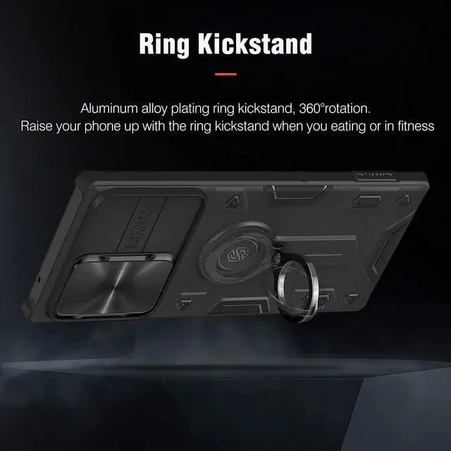 [Useful Ring Kickstand]: Plating 360° rotating ring kickstand is hidden on the back side of the galaxy S22 Ultra protective case, sturdy enough. Ease hands when watching films, playing games or carrying anywhere.