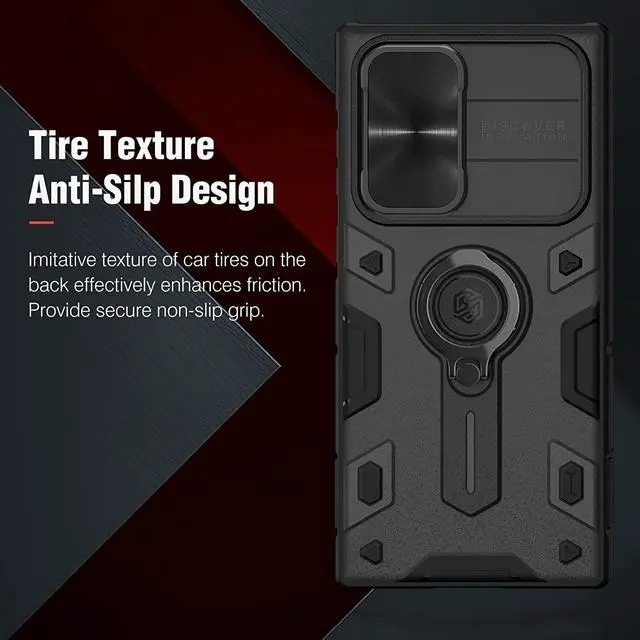 [Unique Creation]: The back side of S22 Ultra case adopts tire texture design which effectively increase friction. Suitable for running, mountaineering, camping or other outdoor sports.