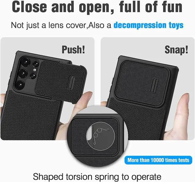 Upgraded Camera Cover DesignUsing upgraded shaped torsion spring to operate the camera cover instead of fully manual operation. Close and open, decompress like playing a toy, Push-Snap! full of fun!
