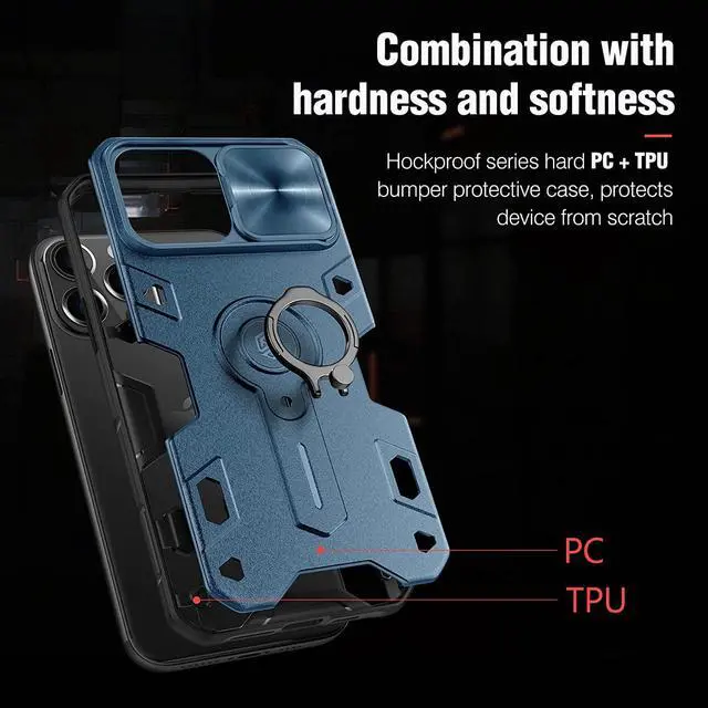 [Tough Armor Design]: iPhone 13 pro max case is made of flexible TPU and hard PC with 4 cushioned corner bumpers. Tire-like texture feels comfortable.