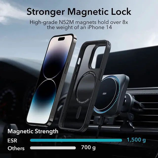 Stronger Magnetic Lock: powerful built-in magnets with 1,500 g of holding force enable faster, easier place-and-go wireless charging and a secure lock on any HaloLock or MagSafe accessory
