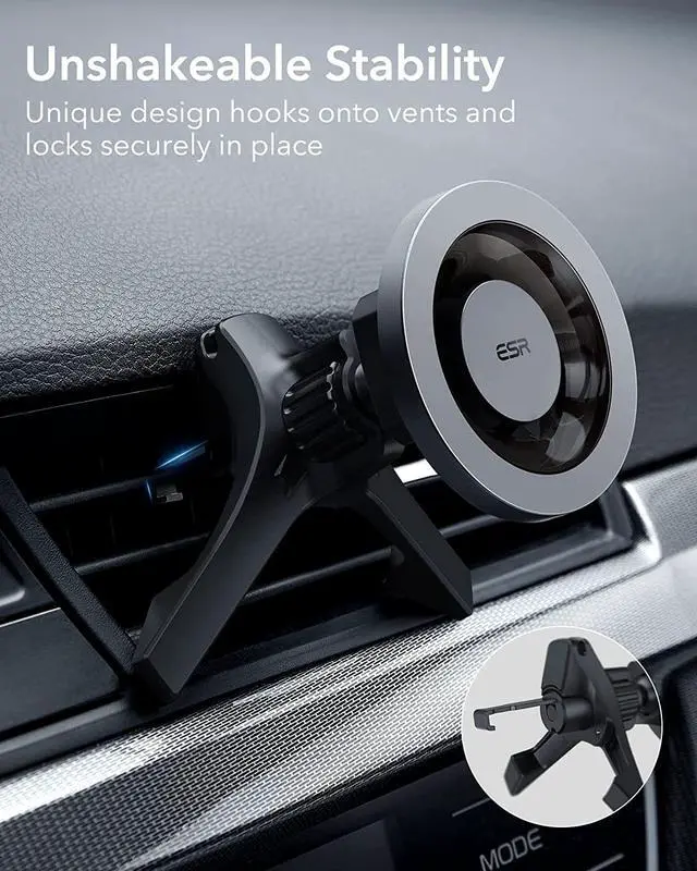 Ultra-Strong Magnets: high-grade N52H magnets with a holding force of 2,300 g keep your phone securely in place; combine with ESR HaloLock case for the strongest magnetic lock; wireless charging not supported