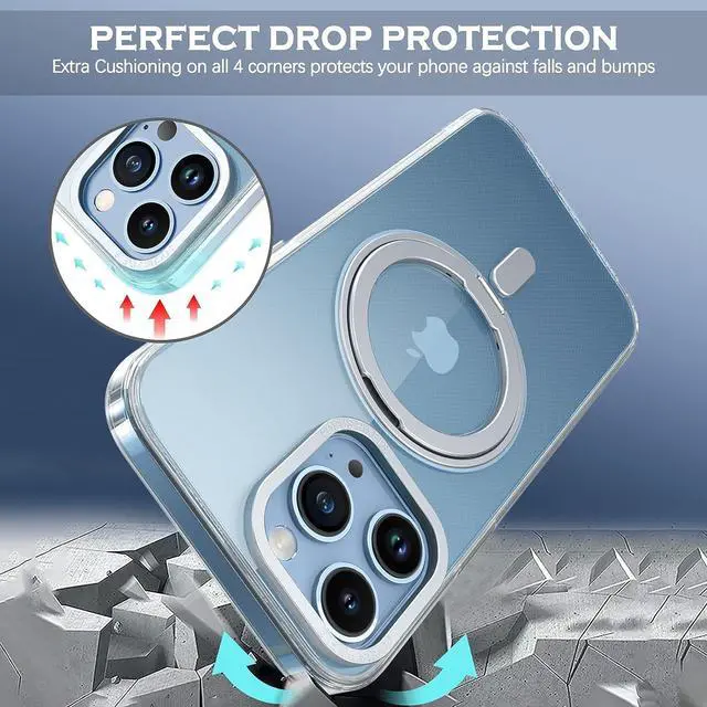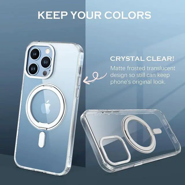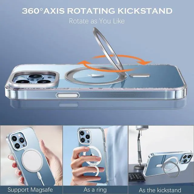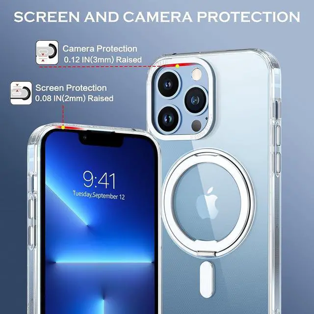 Compatible with iPhone 13 Pro Max: This clear transparent ultra thin 360° Rotatable Magnetic Ring Holder mobile phone case is for Apple iPhone 13 Pro Max 6.7 inch (2021 Released), not compatible with other versions. No screen protector.