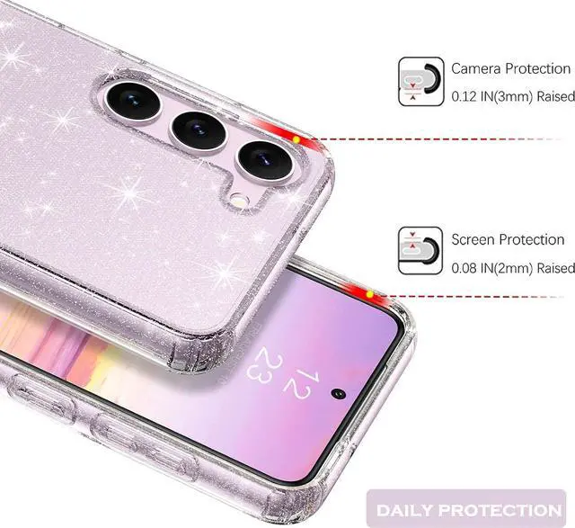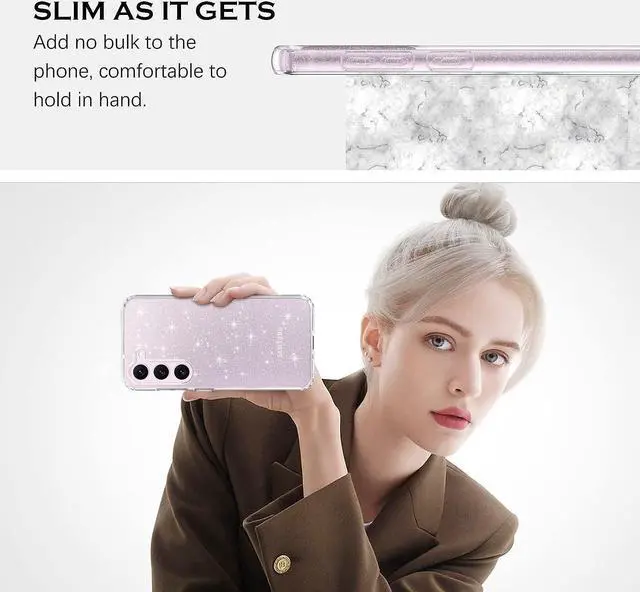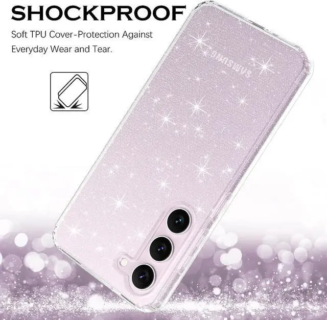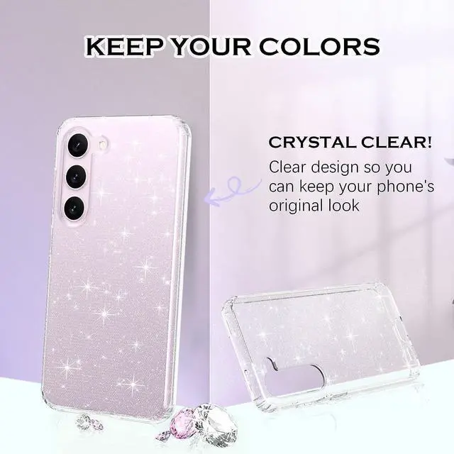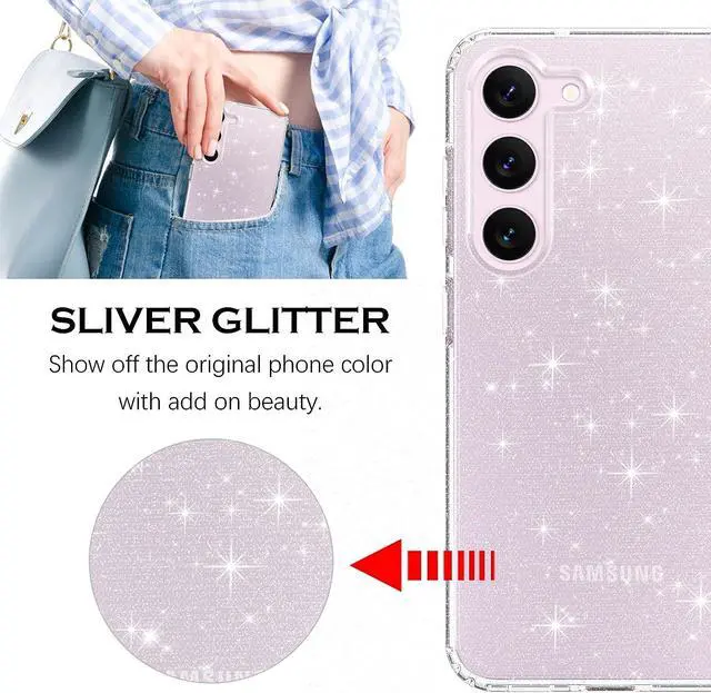 Crystal-Clear Case with glitter: The Galaxy S23 Plus phone case is made of high-quality Transparent Soft TPU material with glitter design. Not only slim fit, but also very elegant and fashion, making your phone more dazzling.
