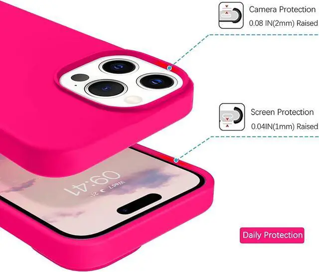 COMPATIBLE with iPhone 14 Pro Max 6.7 Inch : Hot Pink liquid silicone slim case for iiPhone 14 Pro Max Case 6.7 Inch (2022 New Released) ONLY, giving a reasonable amount of drop protection for your smart phone. Its simple yet brightens the iPhones character, the minute you put this on your iPhone you will never look back.
