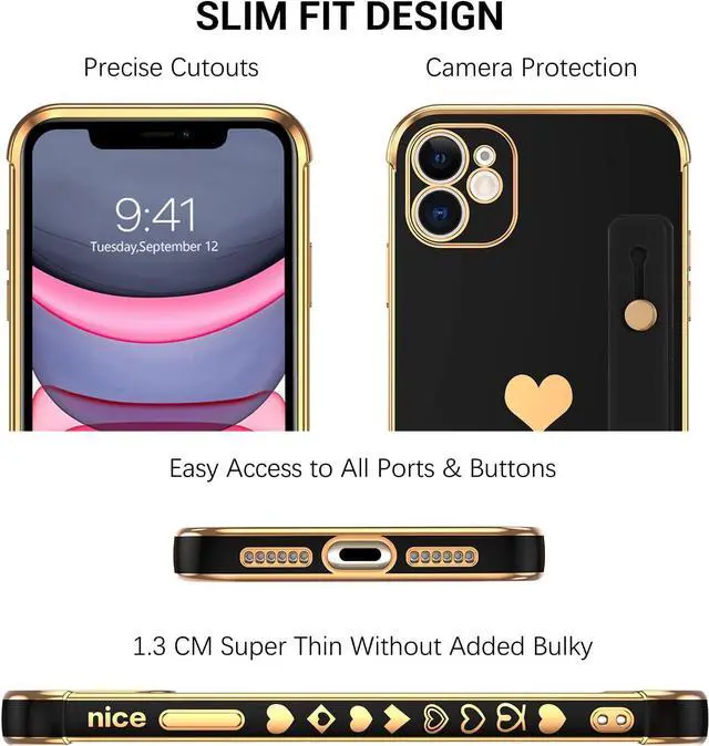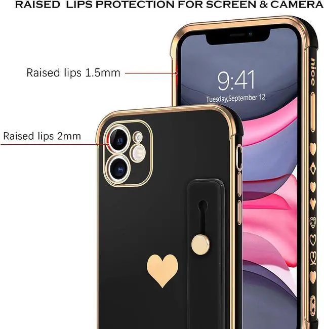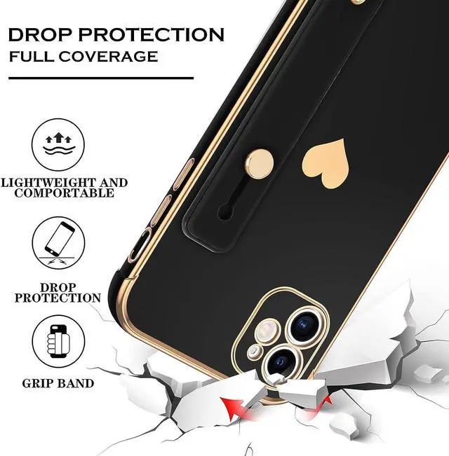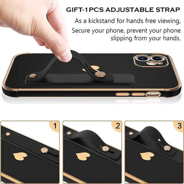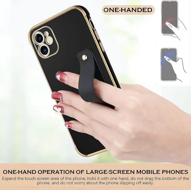 Soft and High-Quality Material: The iPhone 11 wristband kickstand phone holder black and gold silicone case uses a high-quality and soft silicone case, thin provides strong protection against drops, bumps and vibrations.
