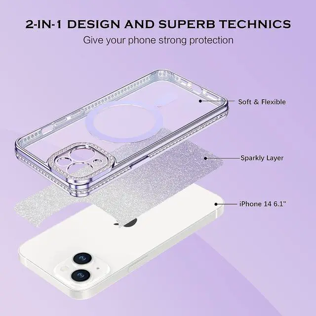 Compatible with iPhone 14: This ultra thin scratch-resistant glitter mobile phone case is for Apple iPhone 14 6.1 inch (2022 Released), not compatible with other versions. No screen protector.