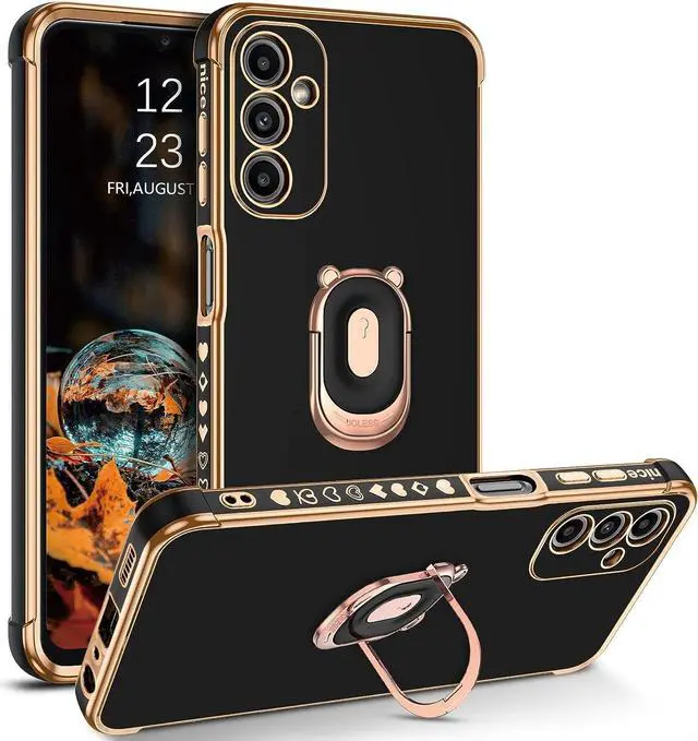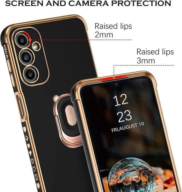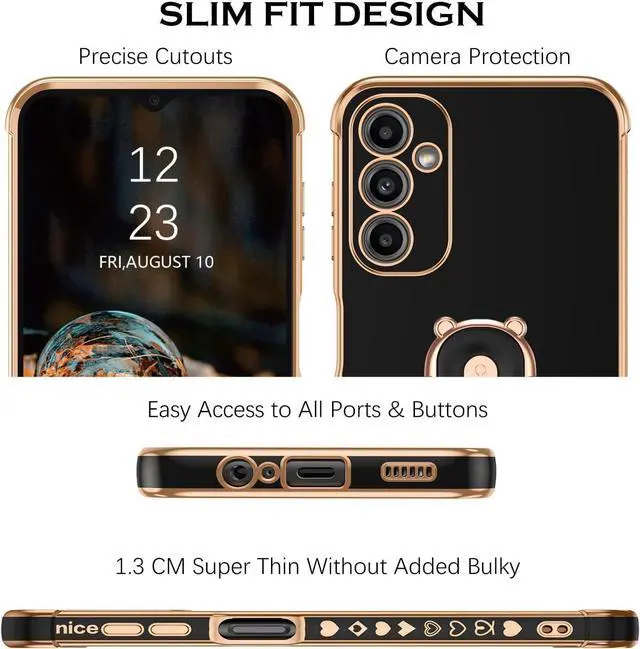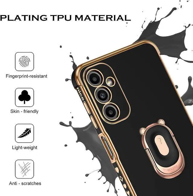 Soft and High-Quality Material: The Galxy A14 5G bear cute kickstand phone holder black and gold silicone case uses a high-quality and soft silicone case, thin provides strong protection against drops, bumps and vibrations.