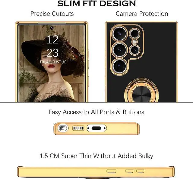 Functional Design for Rotating Rings and KickstandThis Samsung S23 Ultra case features a convenient, adjustable, sturdy ring holder that rotates 360 degrees for easy and safe carrying. The built-in stand allows you to watch videos and movies hands-free with the desired comfort and stability.