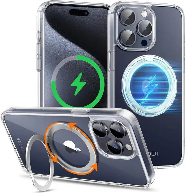 360° Spin & 3-in-1 Kickstand: iPhone 16 Pro case features a durable 360° rotating stand, offering flexible angles\u2014landscape for movies, portrait up to 90° for photos. It also serves as a ring holder and forms a stable triangle base for secure, hands-free use while supporting wireless charging