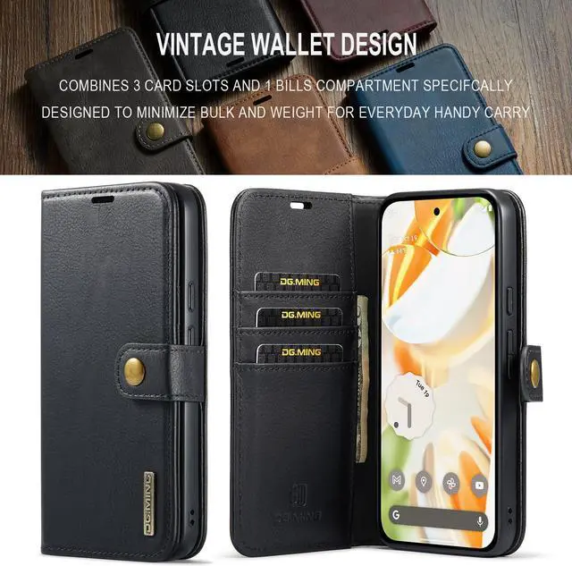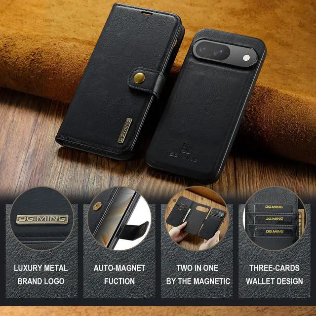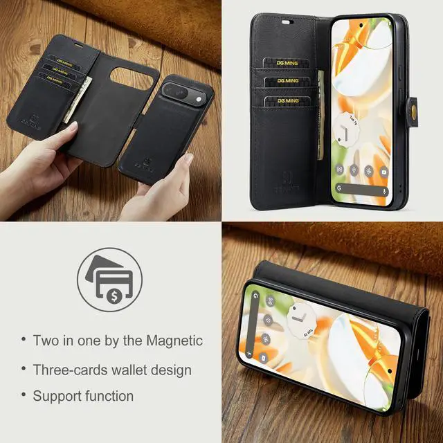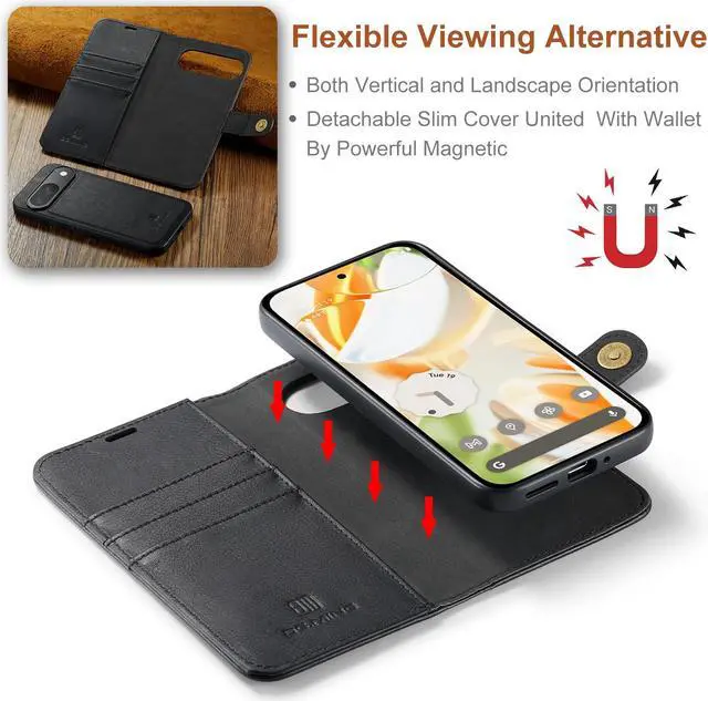 TYJKeJi Case with Card Holder Fashion Cover Flip Case For Google Pixel 9 Pro (6.3inch) / For Google Pixel 9 (6.3inch) (Black)