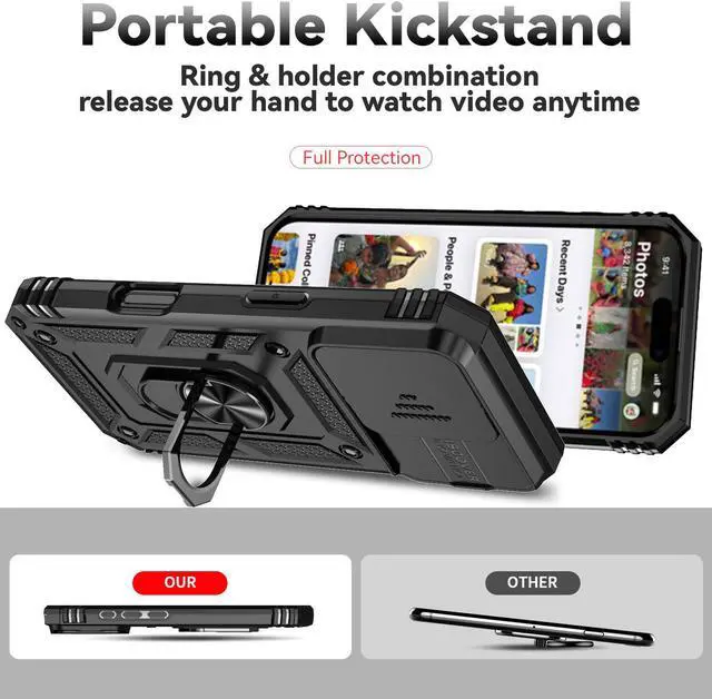 TYJKeJi Case with Stander Fashion Cover KickStand Case For iPhone 16 Pro Max (6.9inch) (Black)