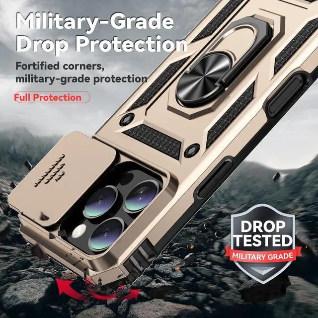 TYJKeJi Case with Stander Fashion Cover KickStand Case For iPhone 16 Pro Max (6.9inch) (Gold)