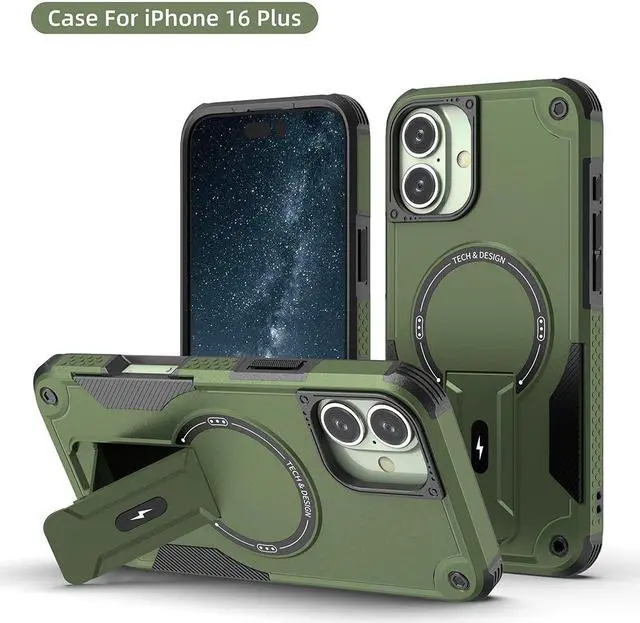 TYJKeJi Case with Stander Fashion Cover (Compatible with Magsafe) KickStand Case For iPhone 16 Plus (6.7inch) (Green)