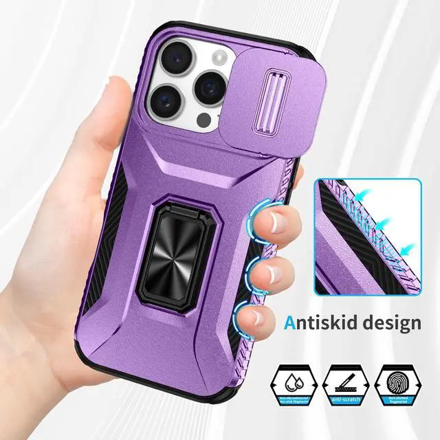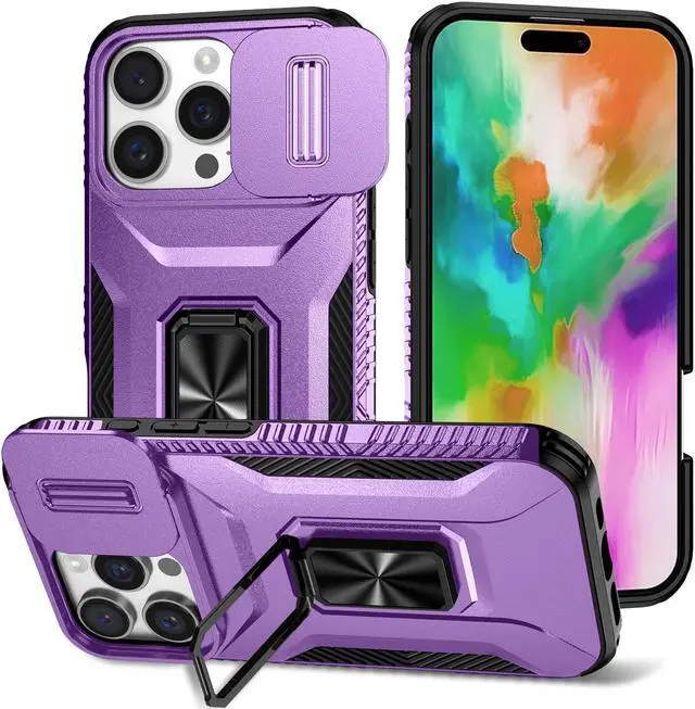 TYJKeJi Case with Stander Cover KickStand Case For iPhone 16 Pro (6.3inch) (Purple)