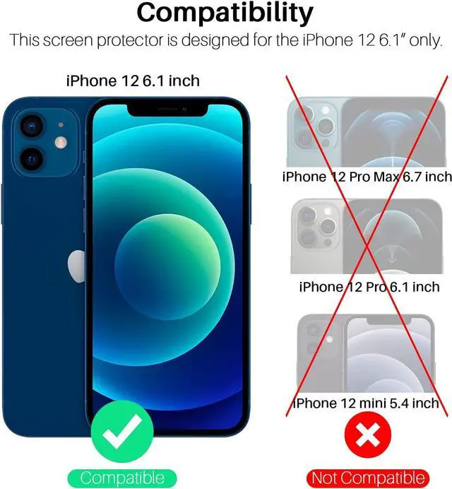 Compatibility: This iPhone screen protector is compatible with iPhone 12KEY_TAB 6.1 inch. Please make sure you have checked the iphone model before payment.