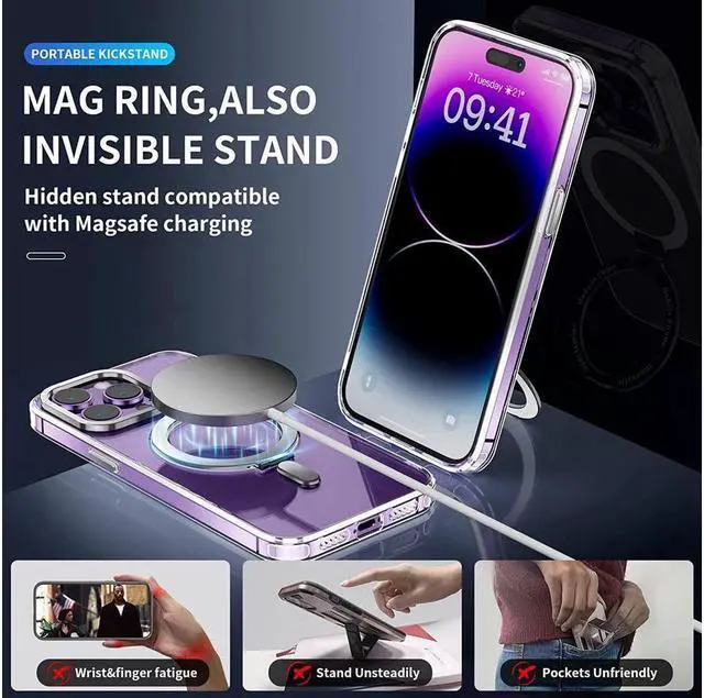 [Functional Stand] This is an excellent and Invisible stand case with a convenient built-in foldable stand made of lightweight and sturdy aerospace-grade strength aluminum alloy. This case sturdily supports your phone in both portrait and landscape modes, allowing you to watch your favorite TV shows or video with your family without using your hands. By studying ergonomics, it provides you with the most comfortable viewing experience.