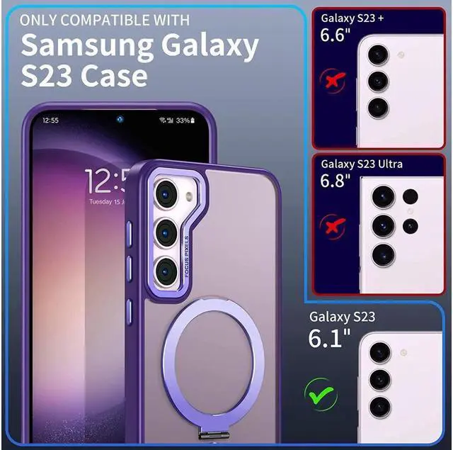 [Perfect Fit For Your Wireless Charger] The Samsung Galaxy S23 case has a built-in super strong magnetic ring that aligns perfectly and locks in place quickly, making wireless charging faster and easier than ever. Combined with the strong magnetic technology, there's no need to worry about shaking your phone and eventually releasing the accessory. You're free to enjoy wireless charging anywhere you want.